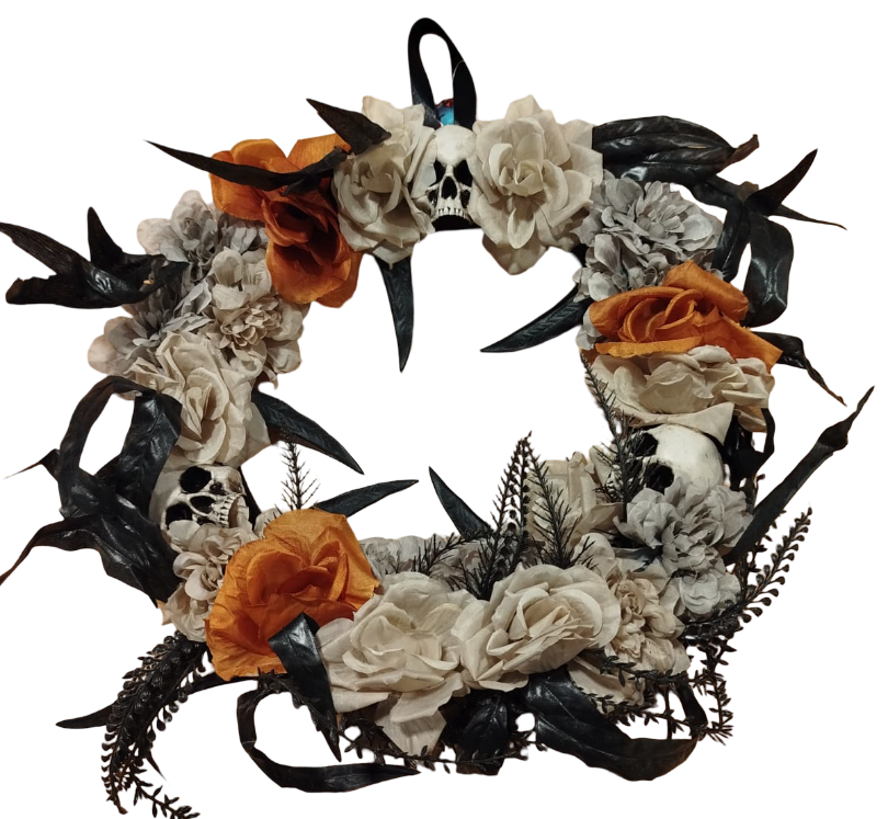CORONA DEC HALLOWEN FLORES Y CALAVERAS X1